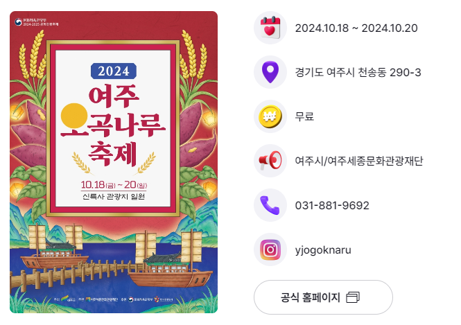 ✅ 기간: 10.18.(금) ~ 10.20.(일) 여주 신륵사 관광지 일원