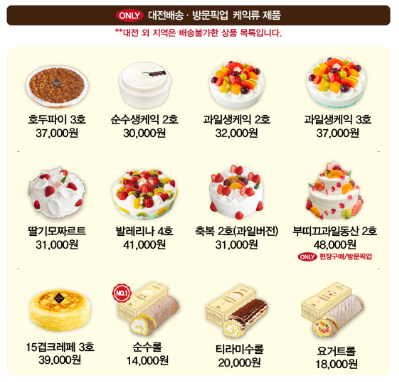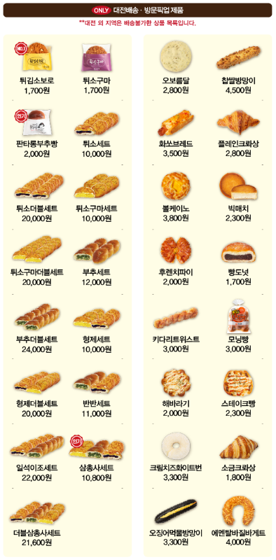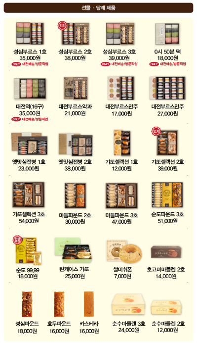 ✅ Only 표시된 성심당 부르스 1호, 성심당 부르스 3호, 0시 50분 떡, 대전역(16구)은 대전지역만 배송