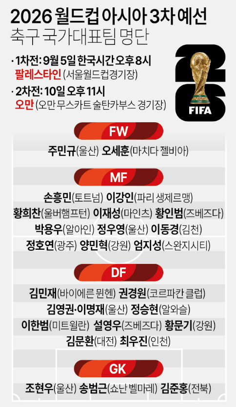 2. 대한민국 축구 대표팀 명단