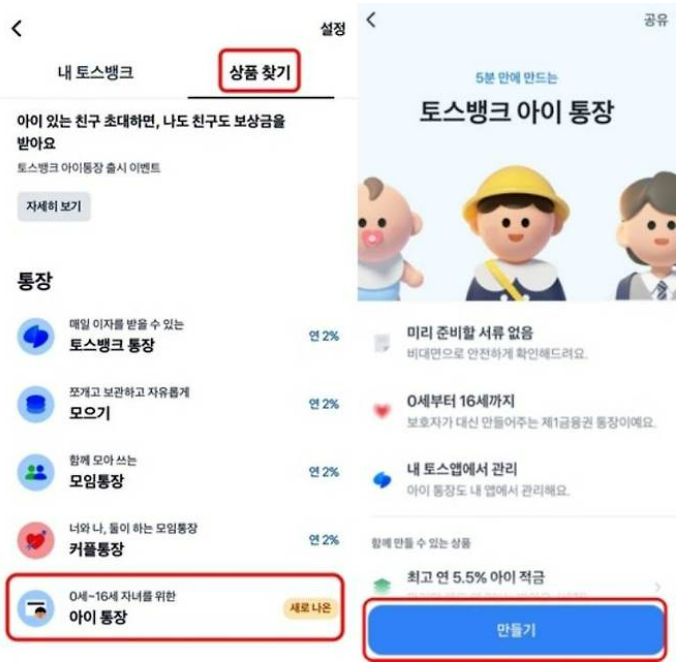 아이 통장과 적금, 체크카드로 아이가 부모와 함께 똑똑한 금융생활을 시작할 수 있도록 토스 계좌 개설로 함께 하세요~!